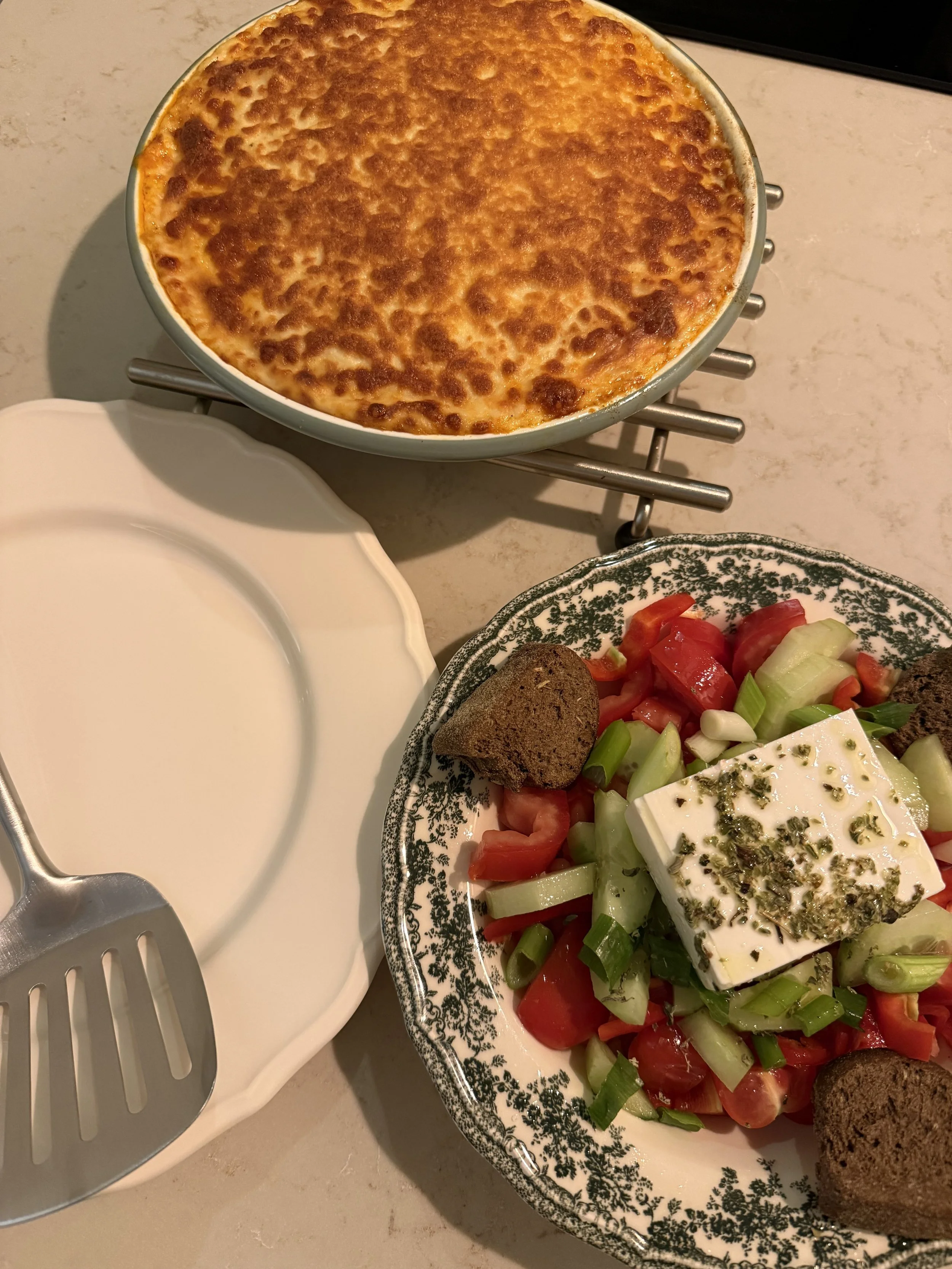 In september waren we op Kreta, waar we meerdere keren moussaka aten. Zo’n gerecht dat simpel oogt, maar waarbij alles moet kloppen: zachte aubergine, kruidige saus en die romige bovenlaag. Echt megalekker.