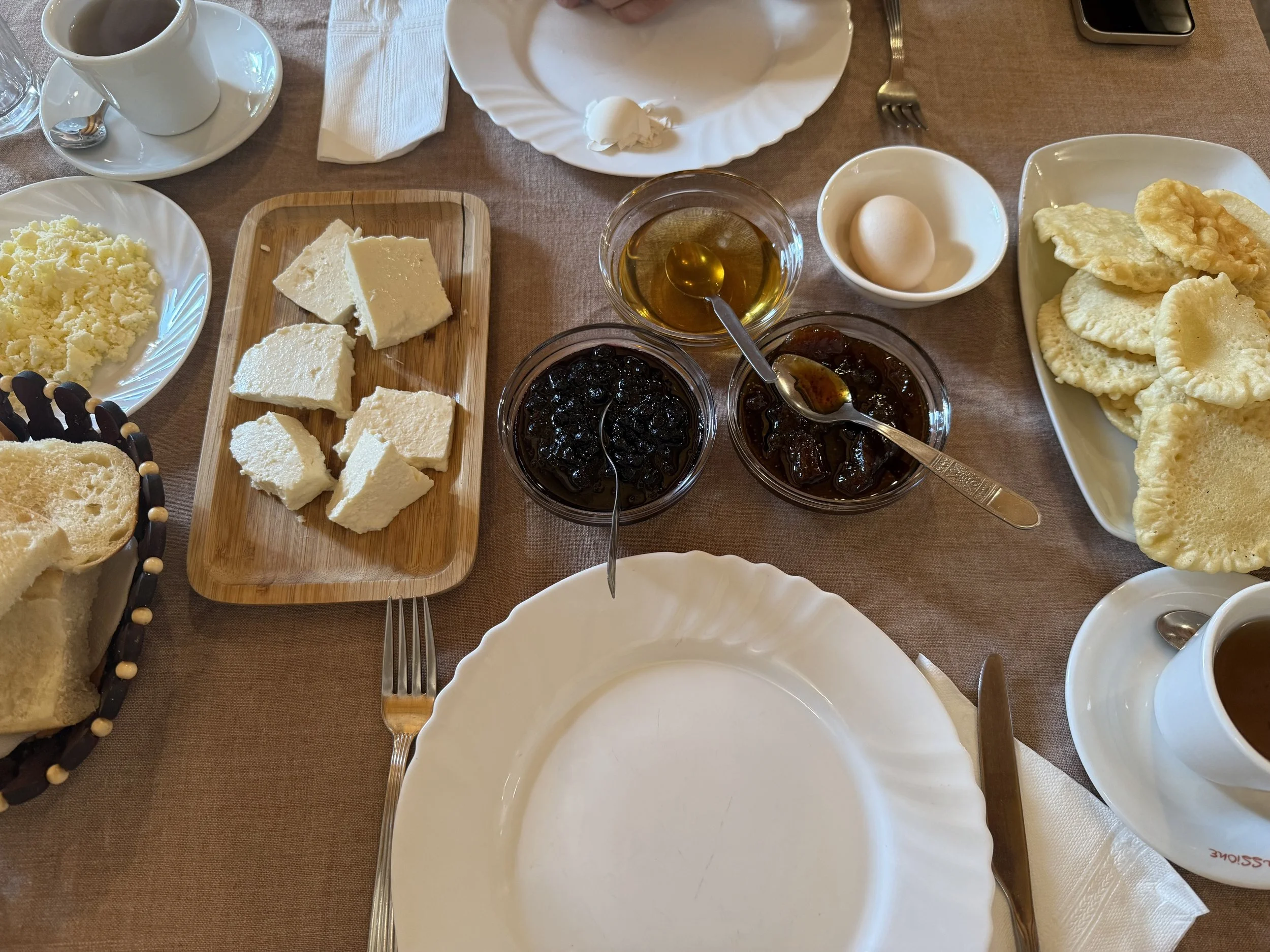 Meestal met walnoten en minder siroop dan je misschien gewend bent. In Gjirokastër aten we een variant met kaneel en kruidnagel — ik was verkocht.