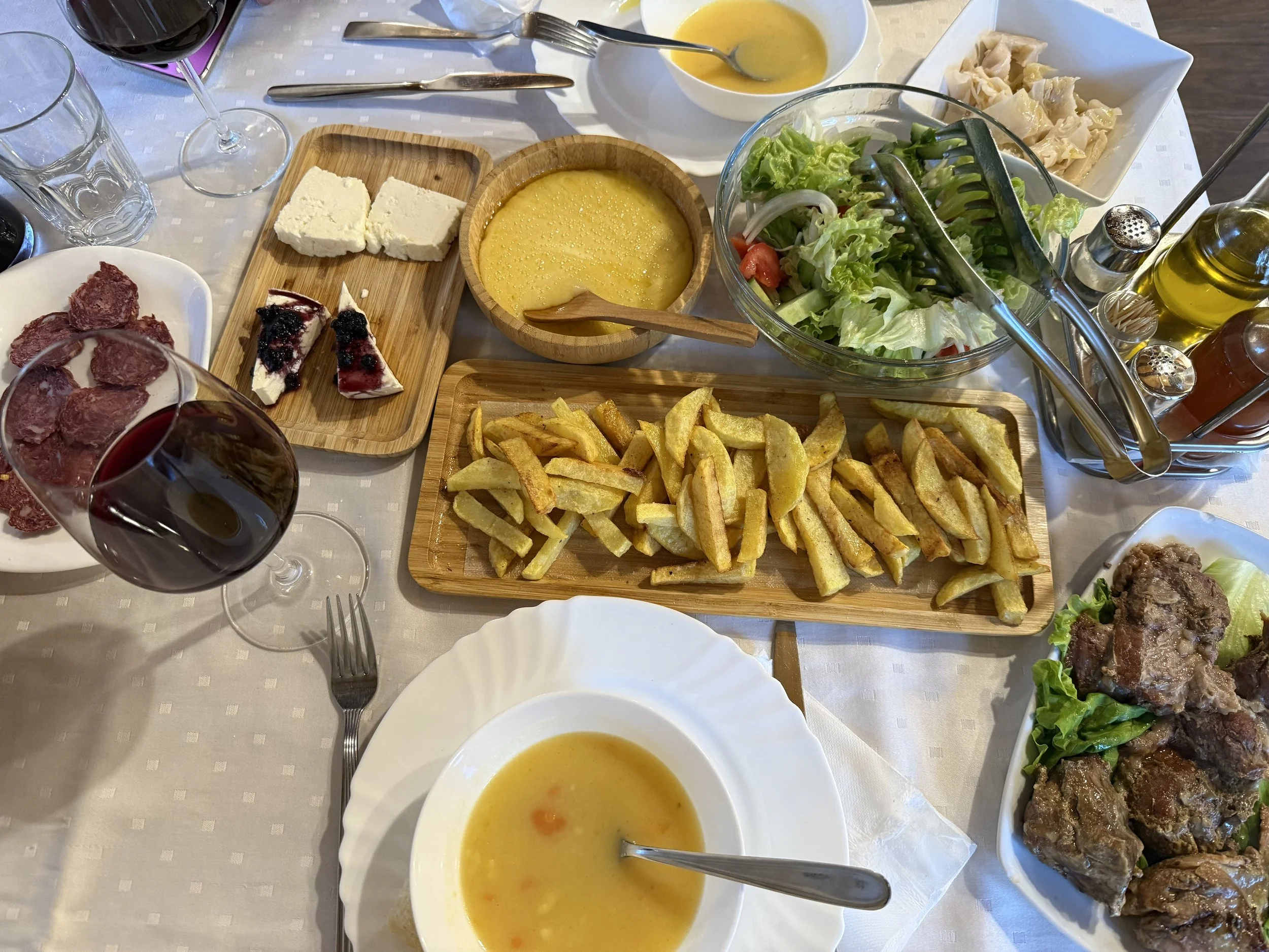Vooral in de bergen (zoals in Lepushë) is het vlees vaak lokaal, langzaam gegaard en vol smaak. De beste kip ooit aten we daar — malser kan bijna niet.